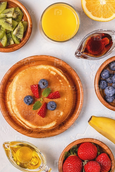 Блины с фруктами, медом, кленовым сиропом