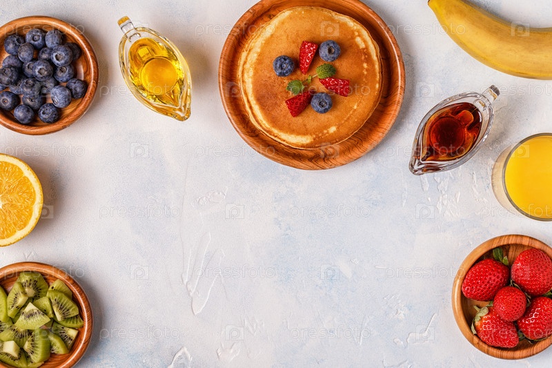 Блины с фруктами, медом, кленовым сиропом