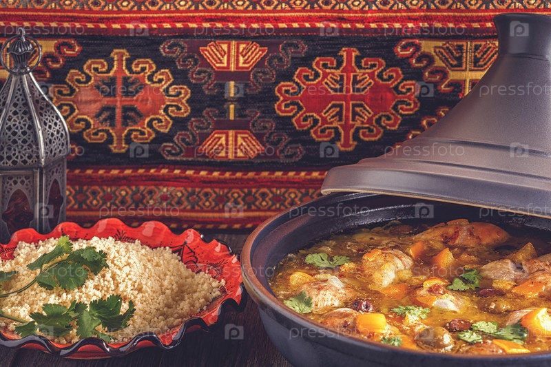 Традиционный марокканский тажин из курицы с солеными лимонами и оливками
