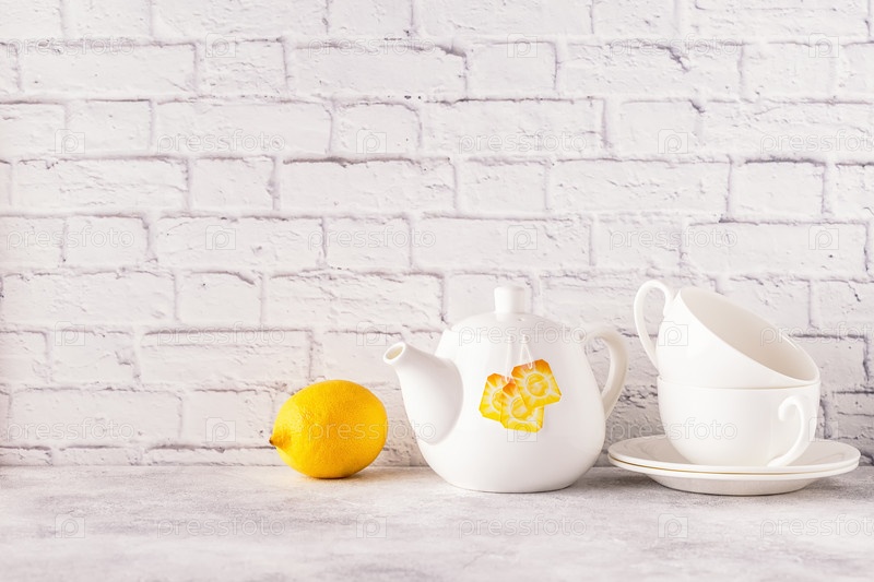 Две чашки и чайник для утреннего чая