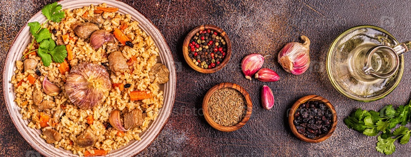 Плов с мясом, овощами и специями