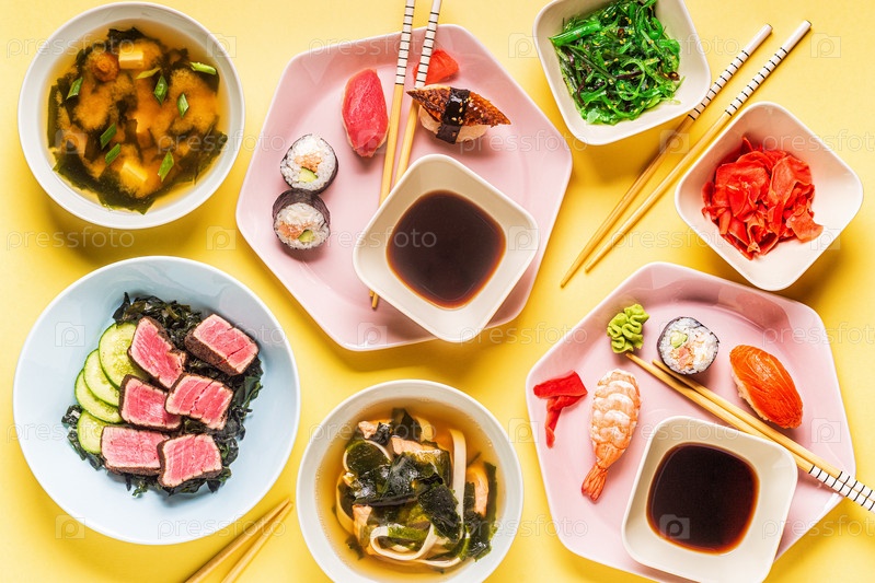 Стол с традиционной японской едой