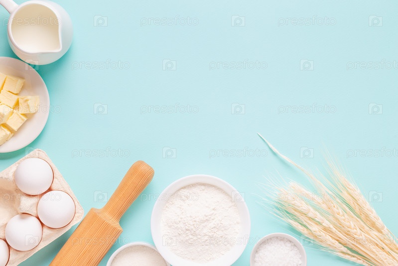 Ингредиенты для выпечки на голубом фоне