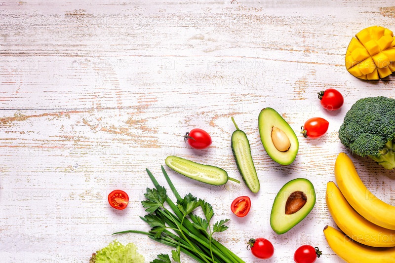Здоровые овощи и фрукты фон