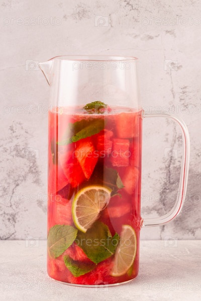 Свежий вкусный вкусный арбузный лимонад на светлом фоне