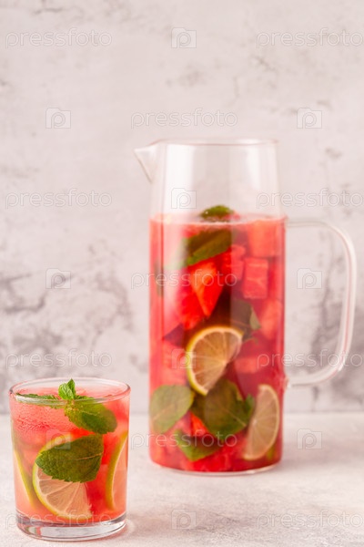 Свежий вкусный вкусный арбузный лимонад на светлом фоне