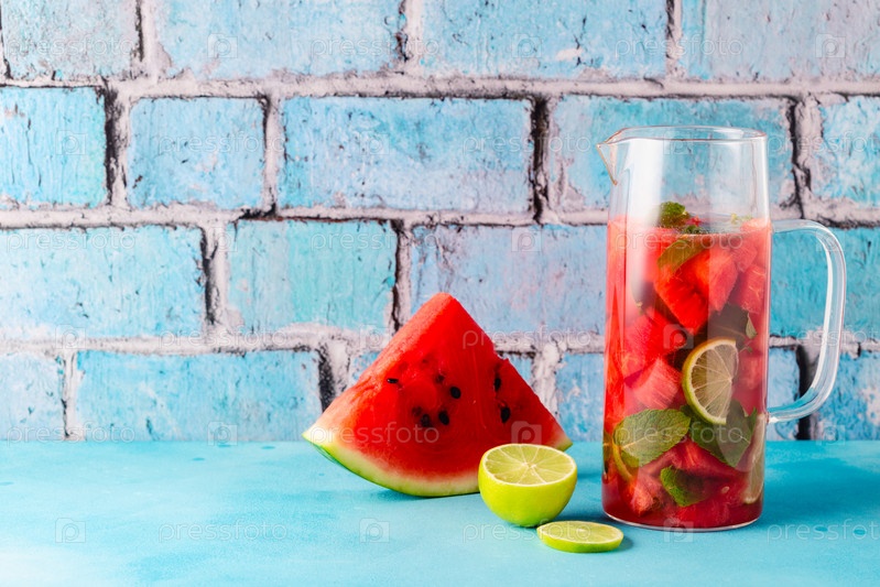 Свежий вкусный вкусный арбузный лимонад на синем фоне