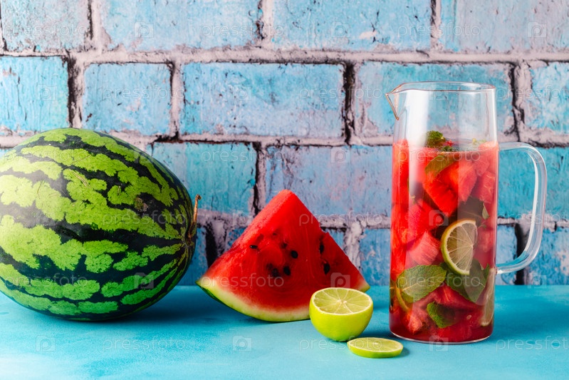 Свежий вкусный вкусный арбузный лимонад на синем фоне