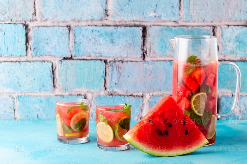 Свежий вкусный вкусный арбузный лимонад на синем фоне
