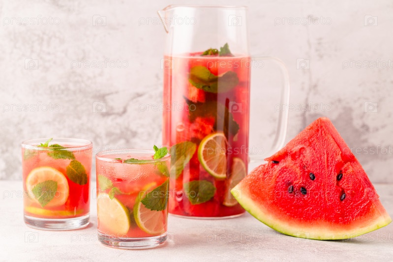 Свежий вкусный вкусный арбузный лимонад на светлом фоне