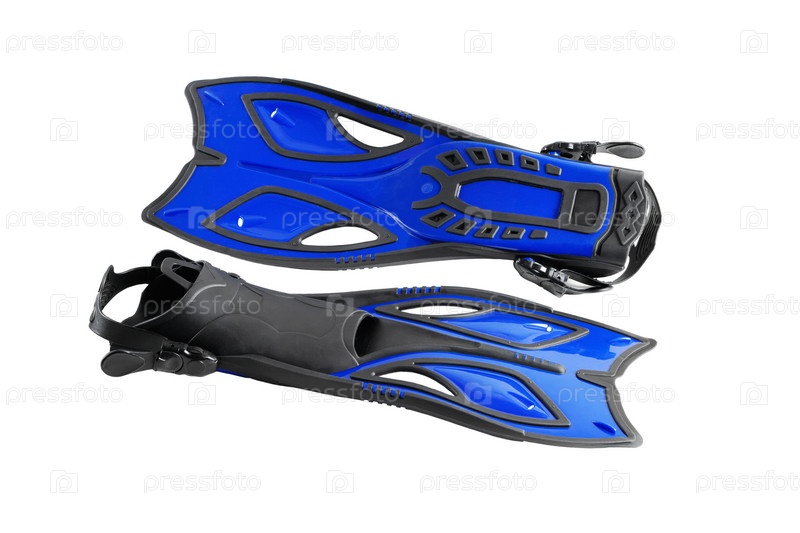 Ласты. Черный с синим. Крупный план. Изолированные на белом фоне