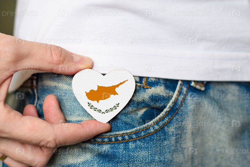 Патриот Кипра! Деревянный значок с флагом Кипра в форме сердца в мужской руке