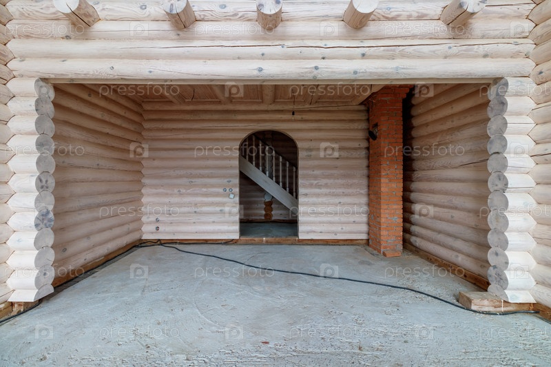 Двухэтажный деревянный коттедж изнутри в хвойно-еловом сосновом бору