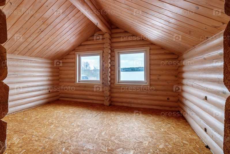 Двухэтажный деревянный коттедж изнутри в хвойно-еловом сосновом бору