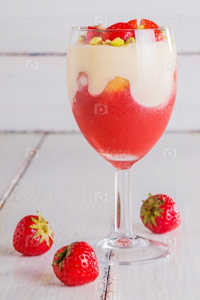 Клубничный тирамису, украшенный кусочками клубники и фисташками