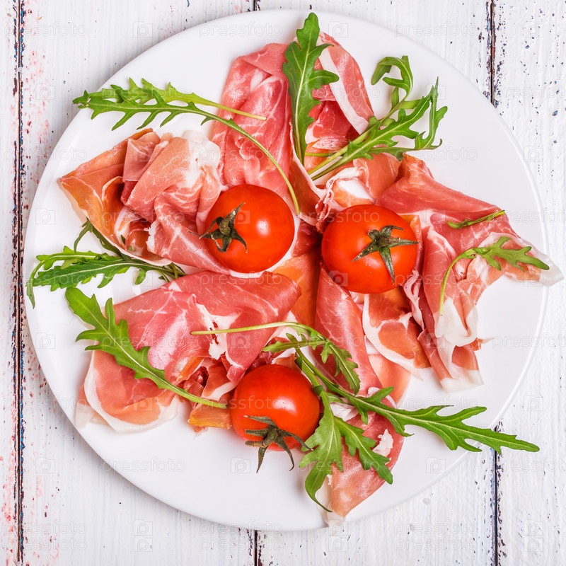 Прошутто с рукколой и помидорами черри