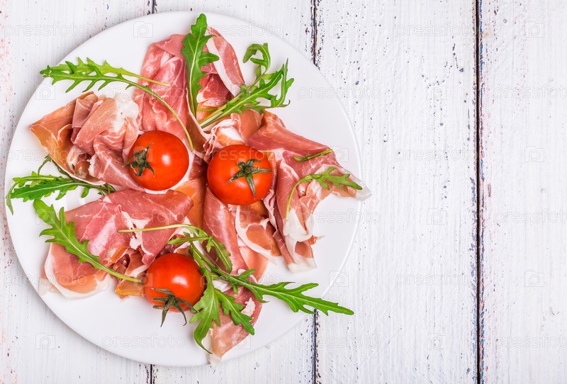 Прошутто с рукколой и помидорами черри