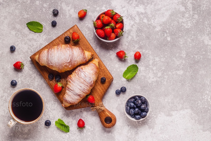 Завтрак с круассанами и свежими фруктами