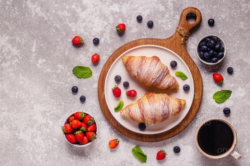 Завтрак с круассанами и свежими фруктами