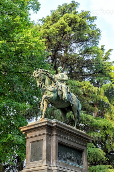 Милан, Италия. конный памятник императору Наполеону III. Автор Франческо Барзаги (1839-1892) начал свою работу в 1873 году и закончил ее в 1886 году