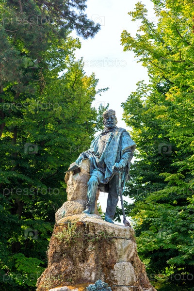 Венеция, Италия. Памятник Джузеппе Гарибальди. Памятник Джузеппе Гарибальди с 3 бронзовыми статуями работы скульптора Аугусто Бенвенути (1839 - 1899)
