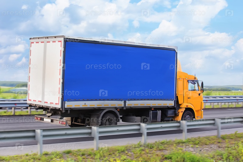 Грузовик движется по шоссе