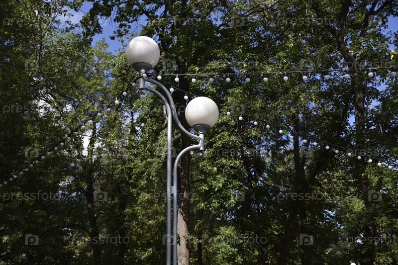 Освещение огни в парке в городе