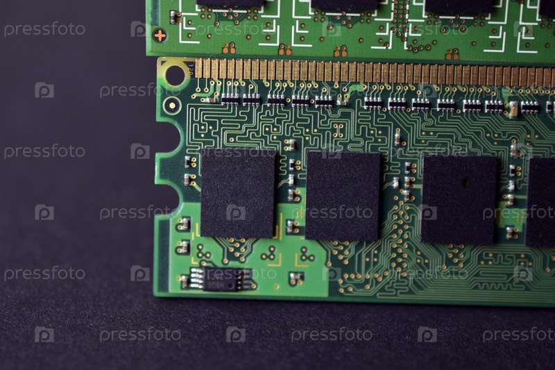 Зеленые полосы оперативной памяти компьютера на черном фоне