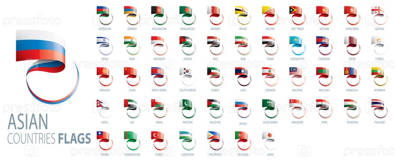 Национальные флаги азиатских стран. Векторные иллюстрации