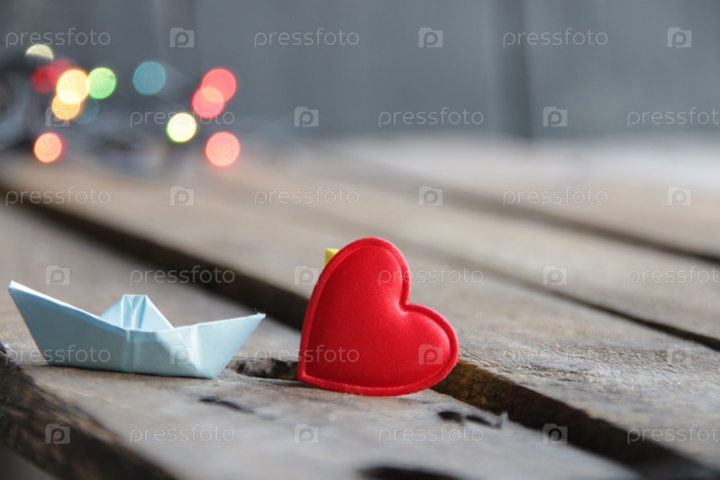 Красное сердце на деревянном фоне. Место для текста. Валентин