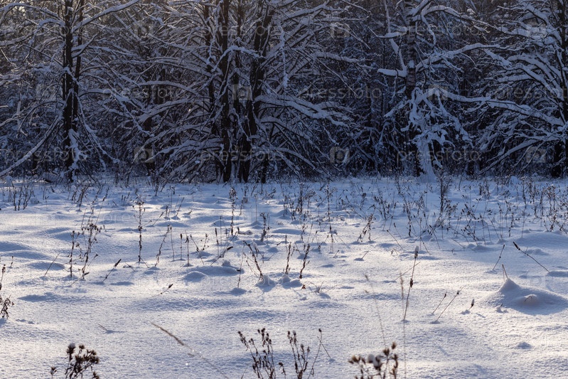 Зима. Лесные деревья, покрытые свежим пушистым снегом