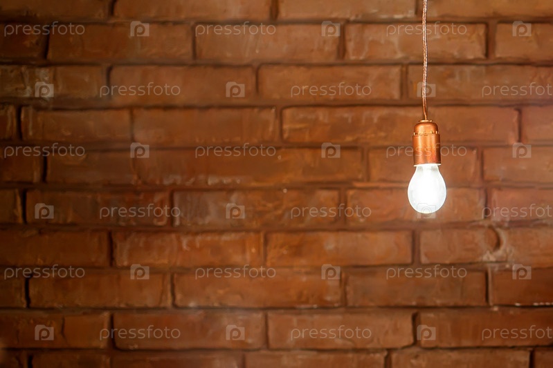 Лампы с проводами на фоне кирпичной стены