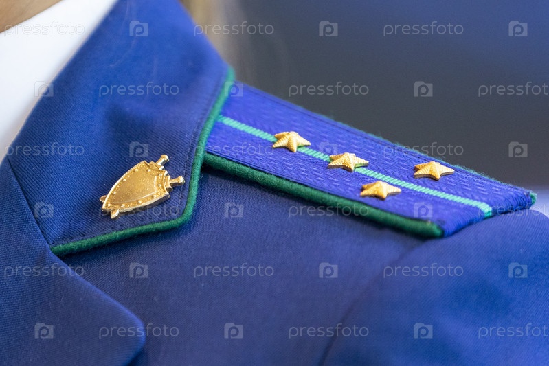 Россия. Санкт-Петербург. Погоны на пикеттах сотрудника прокуратуры. Россия. Санкт-Петербург. Нажатие плечевых ремней на куртку работника прокуратуры
