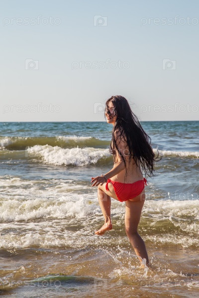 Девушка прыгает в море