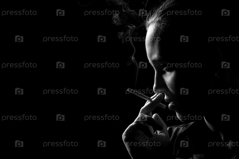 Женщина курит сигарету