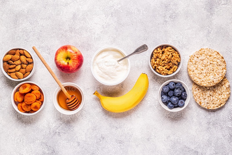 Концепция здорового перекуса, вид сверху