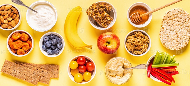 Концепция здорового перекуса, вид сверху