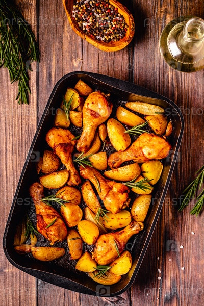 Жареные куриные ножки с картофелем и розмарином