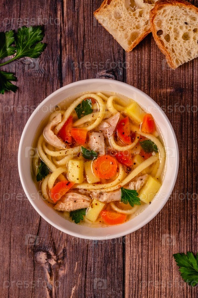 Куриный суп с лапшой и овощами