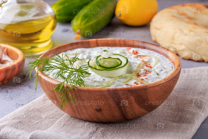 Греческий салат цацики из огурца, йогурта, оливкового масла, чеснока, укропа и специй