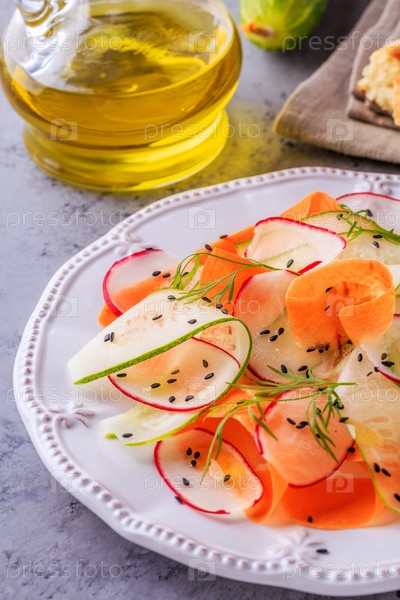 Вегетарианский салат из моркови, огурца и редьки