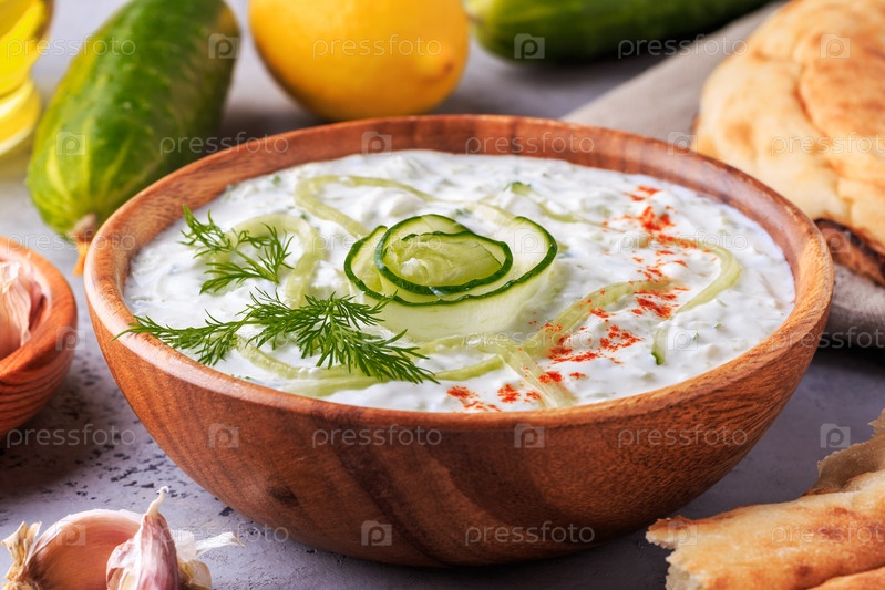 Греческий салат цацики из огурца, йогурта, оливкового масла, чеснока, укропа и специй