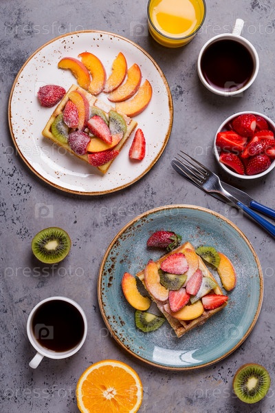 Вафли на завтрак со свежими фруктами