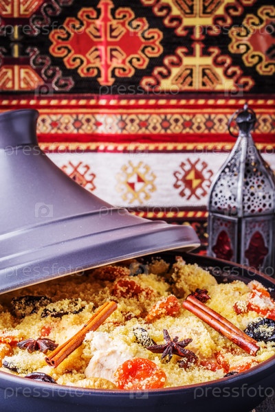Традиционный марокканский тажин из курицы с сухофруктами и специями