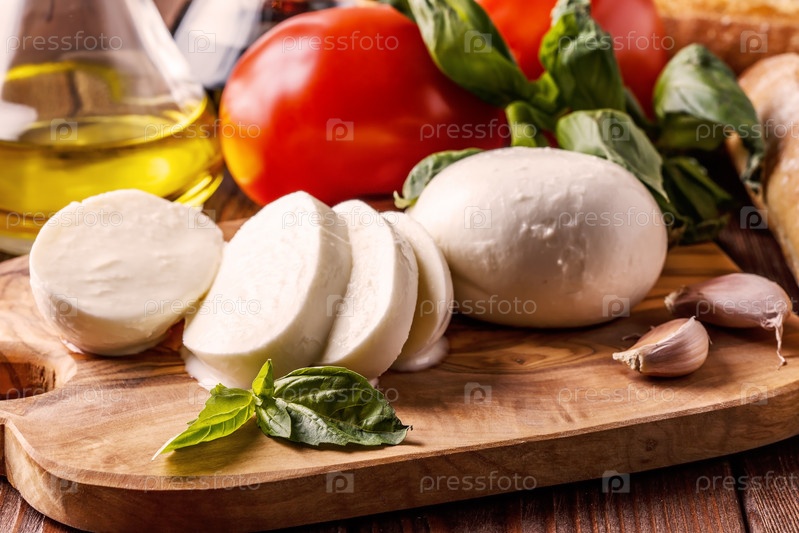 Моцарелла, помидоры, чеснок и базилик