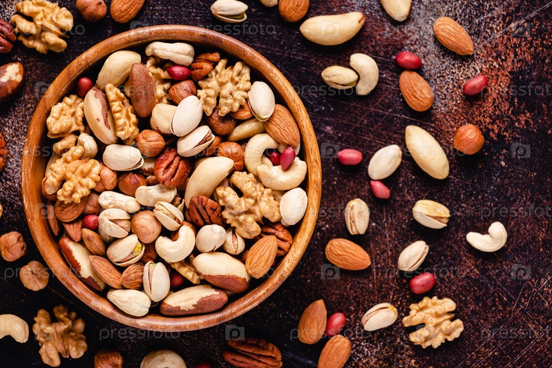 Различные орехи в деревянной миске