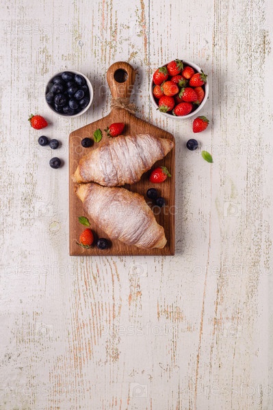 Завтрак с круассанами и свежими фруктами