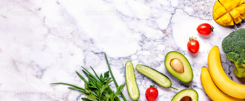 Здоровые овощи и фрукты фон