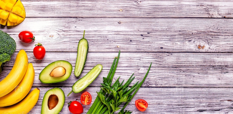 Здоровые овощи и фрукты фон