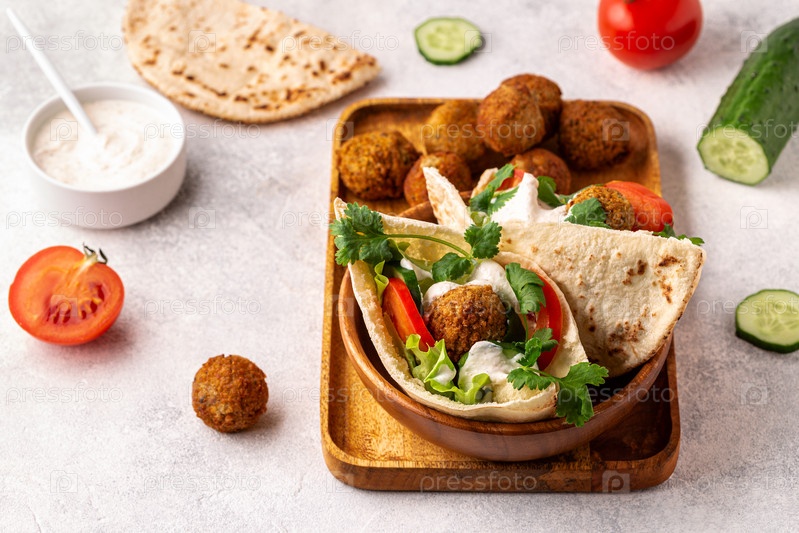 Фалафель и свежие овощи в лаваше